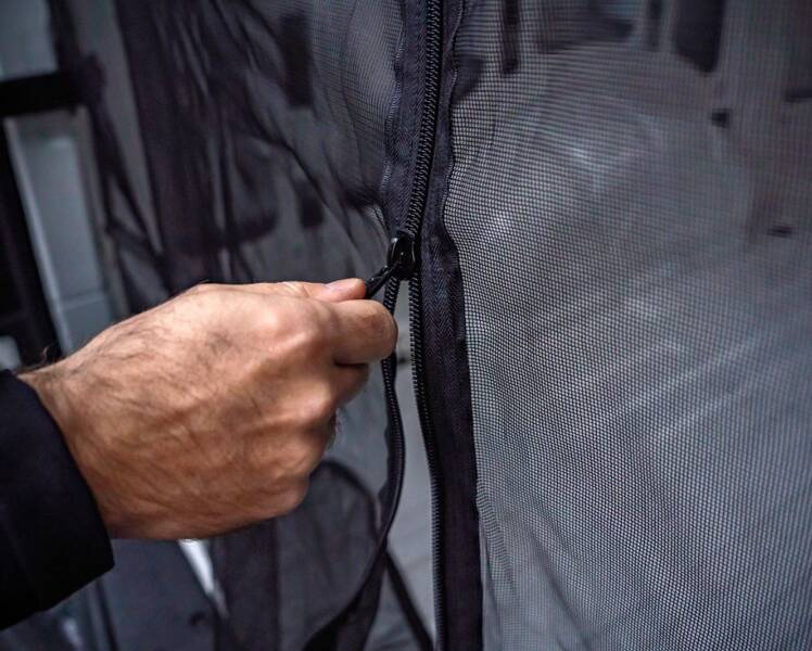 ⭕ Husk! For at lukke døren skal du først fjerne myggenettet!