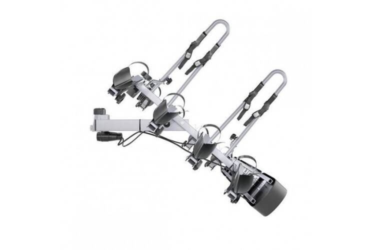 - Designet gør, at den kan vippes væk fra bilens bagagerumslåg. Det gør det nemt at komme til stativet uden at afmontere cyklerne.